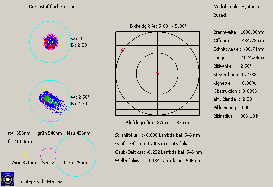 obigen Medial Triplet. Für die Schmidtplatte wurde in PointSpread die neutrale